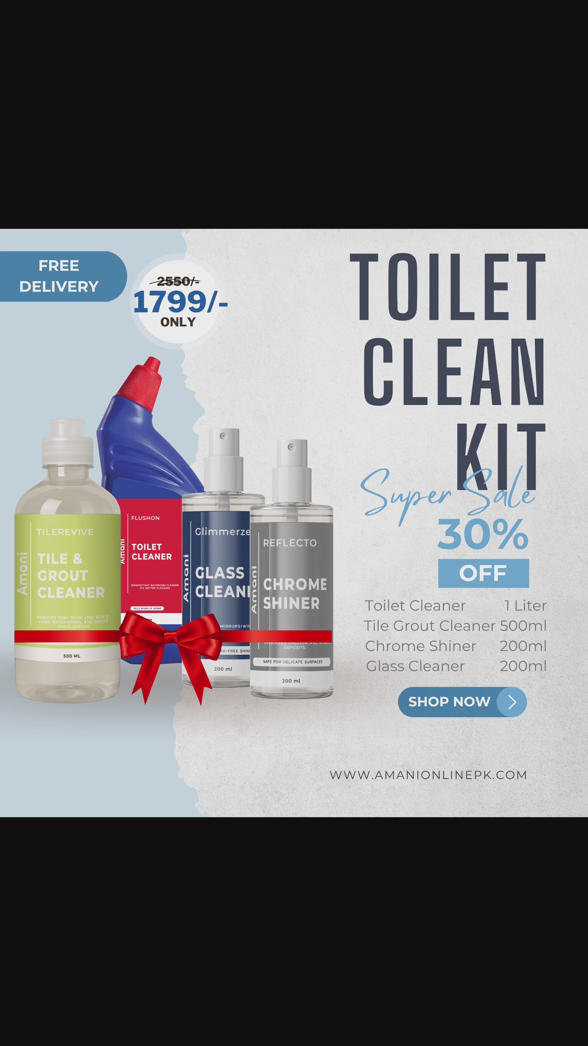 Toilet Cleaner (1L): A powerful toilet cleaner that helps remove stubborn stains and germs, providing a deep clean and fresh scent. Ideal for maintaining cleanliness in your toilet.